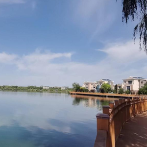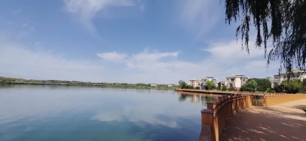 燕然、云中、居延三湖居于中心,人工湖水域面積2250畝,約相當于210個標準足球場大小,休閑廣場、健身步道、花草樹木等環繞而建,波光蕩漾,宛若江南。