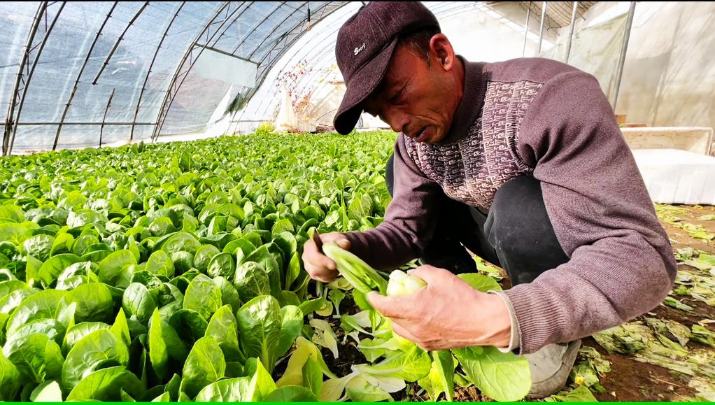 在他的溫室大棚里,水肥一體化裝備可實現精準灌溉、施肥,數字化監測設備能及時干預棚內環境。正值蔬菜成熟期,一大片翠綠的油菜等待收割,四五個工人忙著采摘、分揀、裝筐。