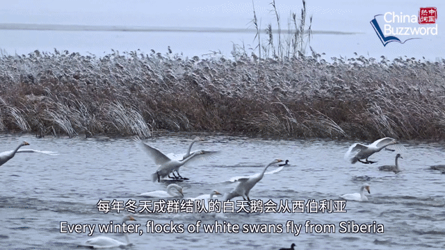 白天鵝從西伯利亞飛到威海榮成棲息越冬