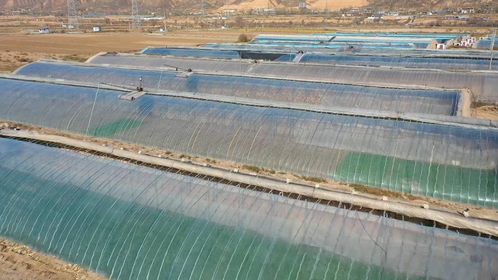 寒冬時節,陽光暖照。一排排蔬菜大棚錯落于旱塬之上,為黃土地增添了色彩。