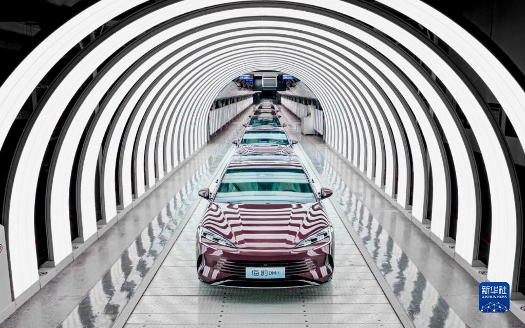 這是鄭州航空港區的比亞迪工廠總裝車間(資料照片)。新華社發