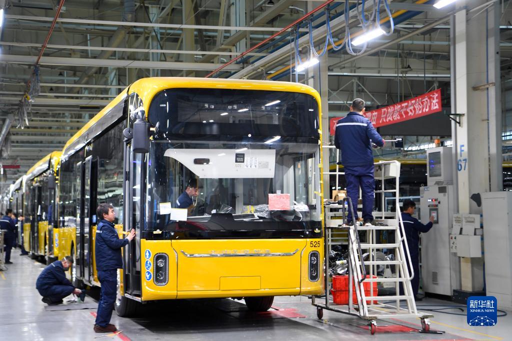 2023年11月30日,工作人員在宇通新能源廠區高端及海外承裝車間作業。新華社記者 郝源 攝