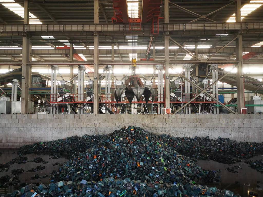 走進位于沭陽縣的江蘇天能資源循環科技有限公司生產區,一只碩大的抓斗將回收池內的廢舊鉛蓄電池挪至粉碎機中,經破碎、熔煉等處理后可得到三樣產品:鉛、塑料和硫酸,這些都是制造新電池的原材料。