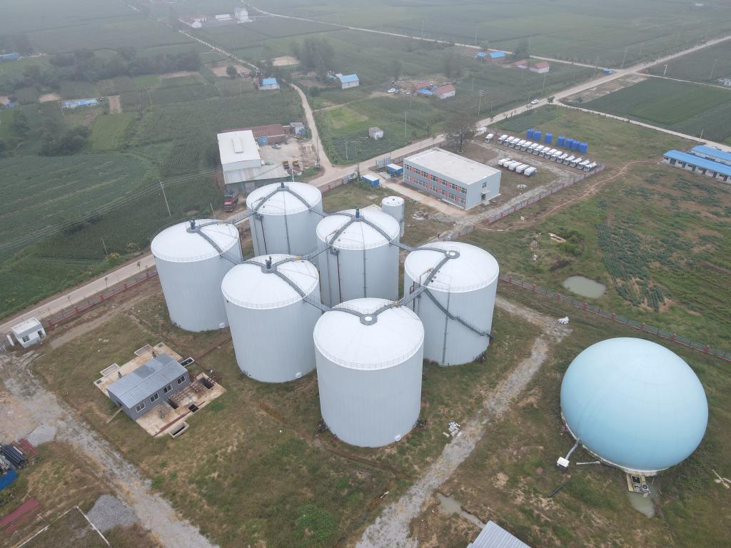 泗洪縣魏營鎮王拐村西北方向的寬闊草地上,6個20米高的白色反應罐十分顯眼。這里是泗洪畜禽糞污資源化利用綠島項目現場。項目負責人張仁丘告訴記者,畜禽糞污經固液分離后,通過厭氧發酵工藝,產生的沼渣可用于生產堆肥和有機肥,沼液經處理后還田消納,實現了畜禽養殖與作物種植雙向增收。