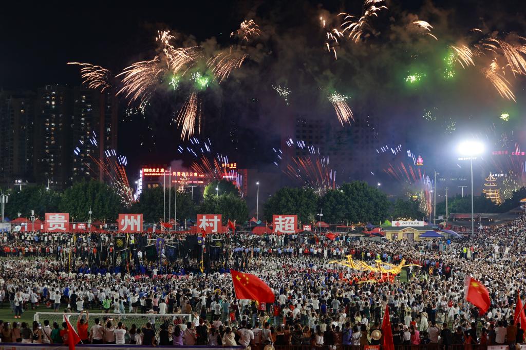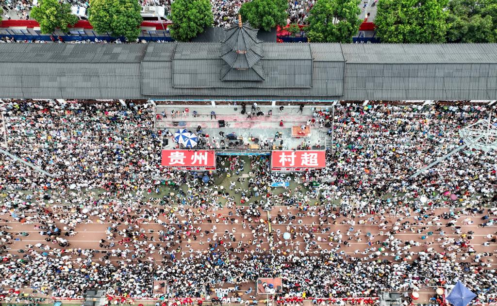 7月29日,觀眾在貴州“村超”總決賽現場(無人機照片)