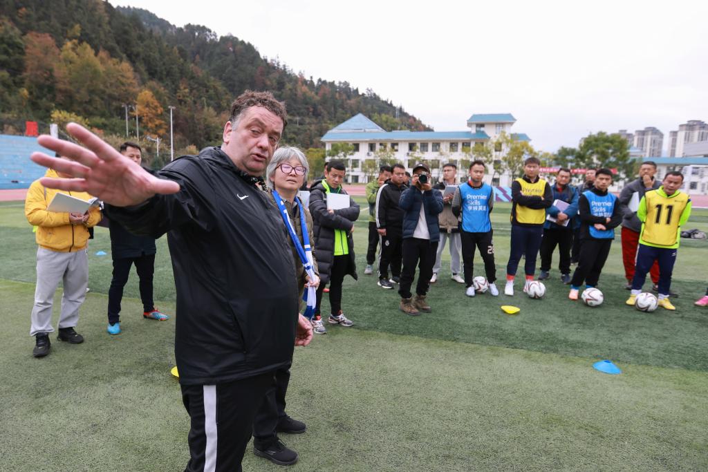 12月12日,利特(前)為參加“學轉英超”基層足球教練培訓項目的學員授課
