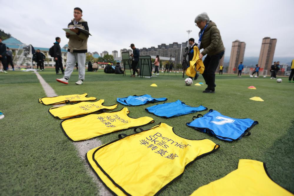 12月12日,“學轉英超”基層足球教練培訓項目工作人員整理訓練背心