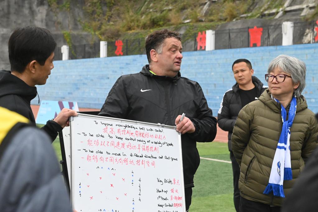 12月12日,利特(中)為參加“學轉英超”基層足球教練培訓項目的學員授課