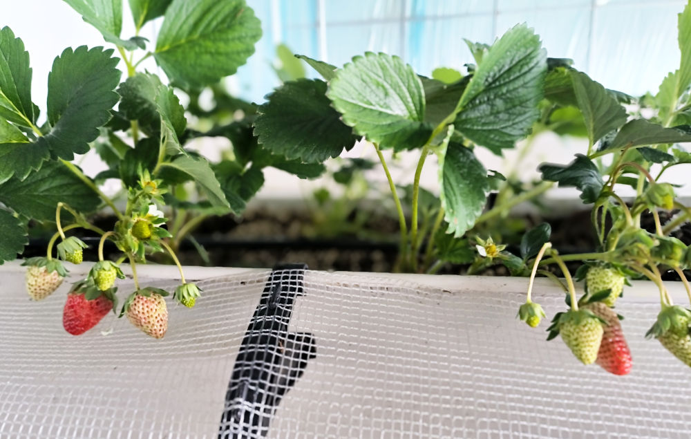 寧夏涇源縣香水鎮卡子村溫棚里的草莓已經掛果。新華社發