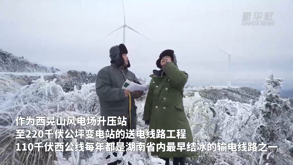 在湖南省懷化市麻陽苗族自治縣,每到冬季,海拔1420米的西晃山,平均有50多天是大風大霧、雨雪冰凍天氣。作為西晃山風電場升壓站至220千伏公坪變電站的送電線路工程,110千伏西公線每年都是湖南省內最早結冰的輸電線路之一。
