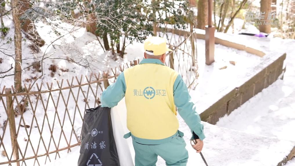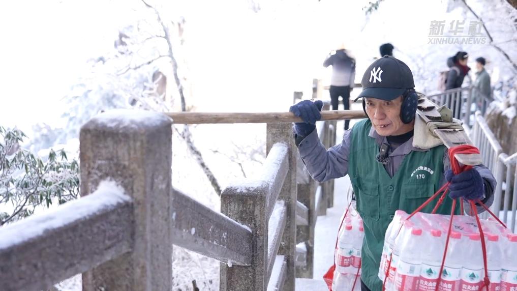 近日,世界文化與自然遺產黃山最低氣溫降到零下十攝氏度以下。為了保護這一世界遺產,同時在寒潮降雪天氣中保障游客安全,黃山上,工作人員們正日夜奮戰,鏟冰除雪,確保物資供應充足、景區環境良好和旅游秩序井然。