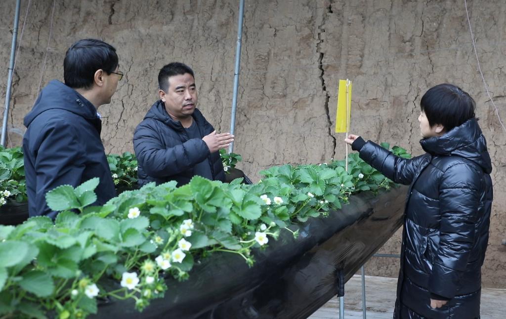 沙河市農技人員在指導農戶管理草莓。(受訪者供圖)