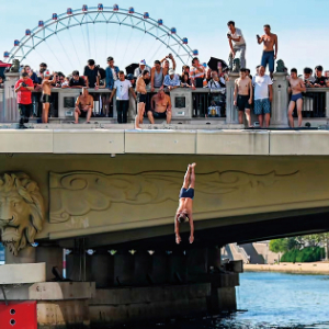 今年夏秋之際,大爺們如往常一樣,從獅子林橋上縱身躍入海河中,濺起的水花也一如往常。但這一次,這些并不專業的水花,濺到了互聯網上,形成了一波波漣漪。一時間,“天津跳水大爺”火爆全網,火到獅子林橋被網友戲稱為“6A級景點”,后來又“升級”到“8A級”。有人開玩笑說,“每天有1億人到天津”,連天津本地人想一睹大爺們的英姿,都擠不進去。