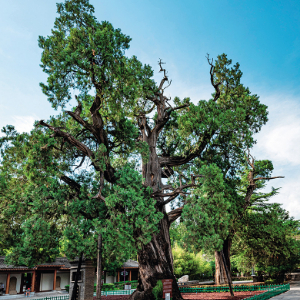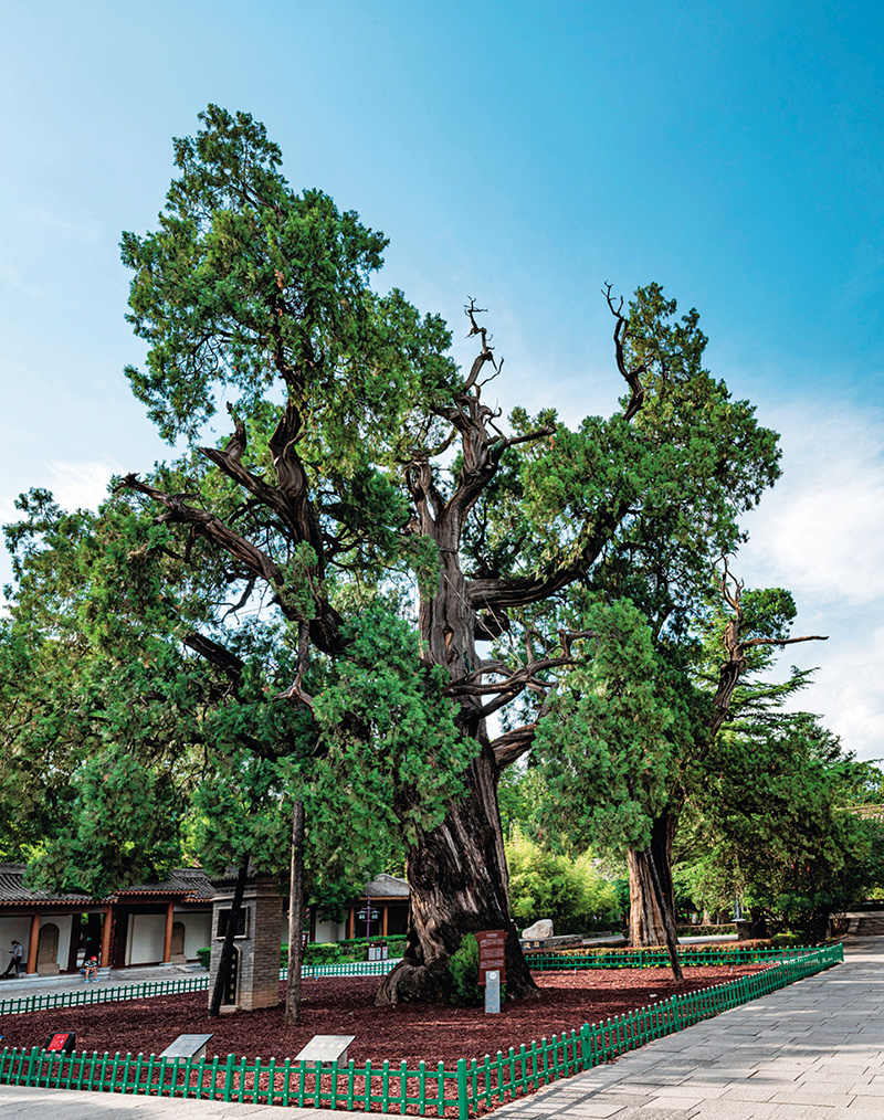 千百年來,謁陵人、護陵人和當地百姓在黃帝陵及周邊大規模種植柏樹。目前,黃帝陵古柏群占地3000多畝,共有古柏8萬余株,其中千年以上古柏3萬余株。這是我國覆蓋面積最大、保存最完整的人工種植古柏林。