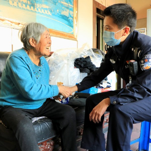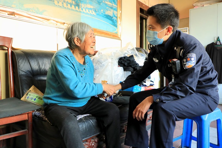 2021年11月,在七臺河市桃山區,劉欣看望轄區老人。(七臺河市公安局供圖)