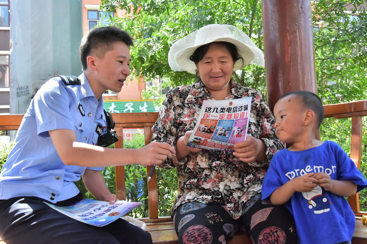 2022年7月29日,在七臺河市桃山區,劉欣在管轄社區內開展反詐宣傳。(七臺河市公安局供圖)