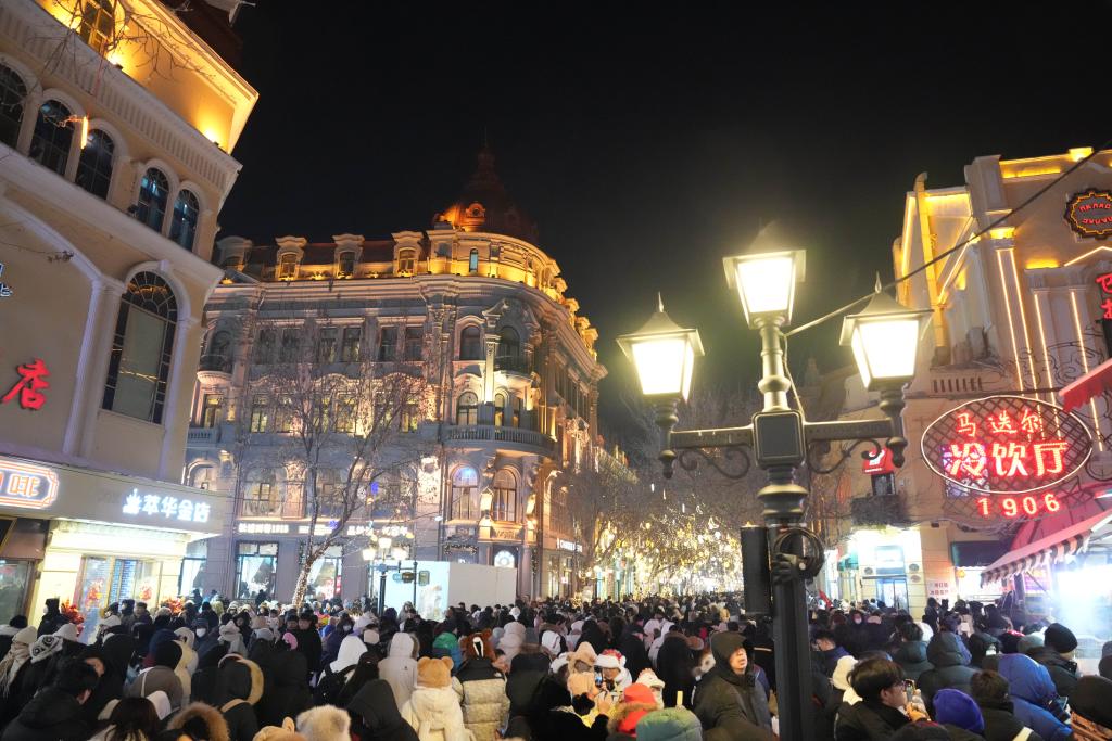 哈爾濱百年老街中央大街人頭攢動。新華社記者王建威攝