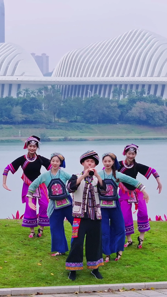 廣西青年吹奏民族樂器跳“科目三”。(圖片由廣西電視臺提供)
