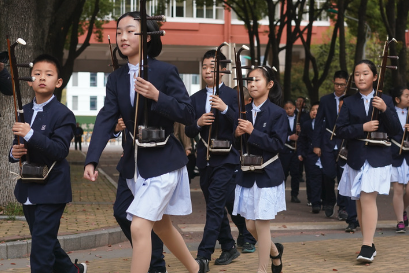 江蘇無錫梅村實驗小學二胡社團學生在校園內(2023年3月29日攝)。新華社記者 季春鵬 攝