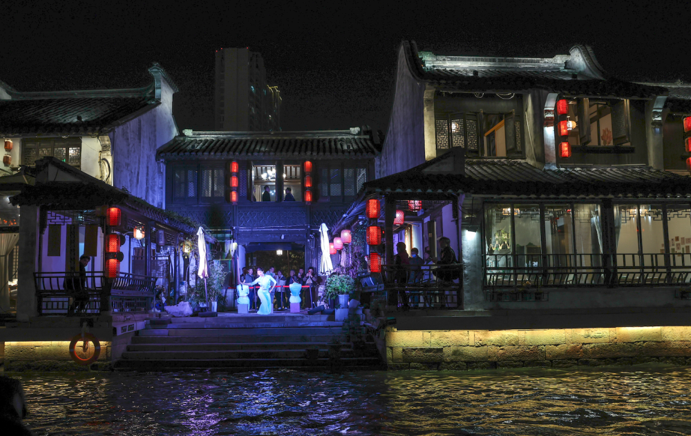 昔日工業遺產,化作條條“水弄堂”。入夜,清名橋歷史文化街區迎來一天中最動人的時刻。人們乘坐畫舫穿梭在槳聲燈影里,兩岸的絲廠、茶樓、書場、戲臺等古跡勾勒出迷人的水鄉景致;岸上,前店后坊人頭攢動,人們品嘗著美食、香茗,陶醉于夜色下的江南風情。