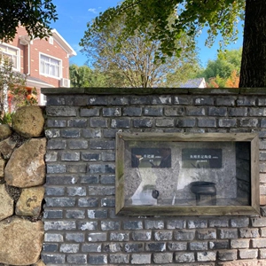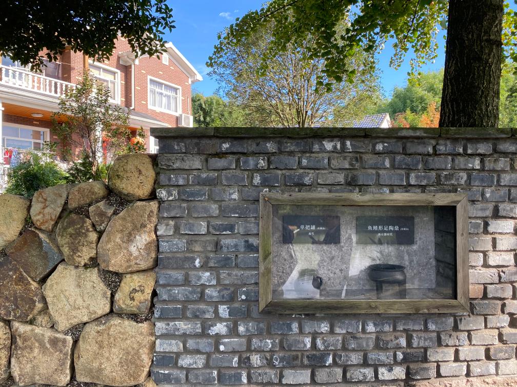 杭州市余杭區徑山鎮小古城村一處村民院落的院墻上,別出心裁地嵌入了文物仿制品。新華社記者馬劍 攝