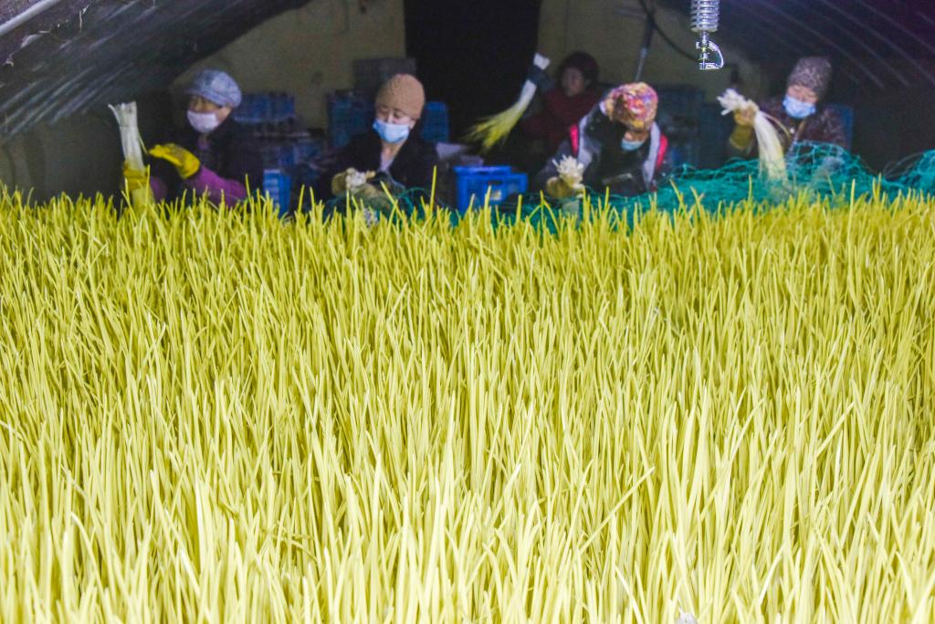 1月23日,西留村鎮朱山莊村的農戶在收割蒜黃。(受訪單位供圖)