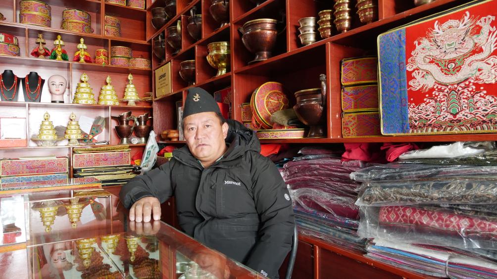 在普蘭縣唐嘎邊貿市場里經商的尼泊爾籍商人米瑪(1月7日攝)。新華社記者陳尚才攝