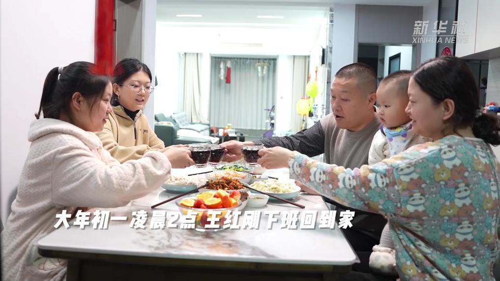 全家人吃上一頓遲到的團圓飯后,又奔赴崗位開始新一天的工作。