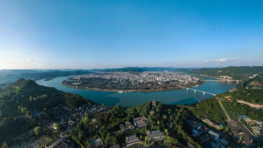 賞民俗、游古城后,再登臨古城中心的中天樓,望遠懷古。沿著中天樓這一軸心,古城街巷樓宇向四面八方次第展開。嘉陵江自城西北流來,由東北方向流出,閬中城便處在這一片山水環抱之中。江上帆船點點,遠處錦屏山蜿蜒起伏,宛若一幅水墨丹青畫。