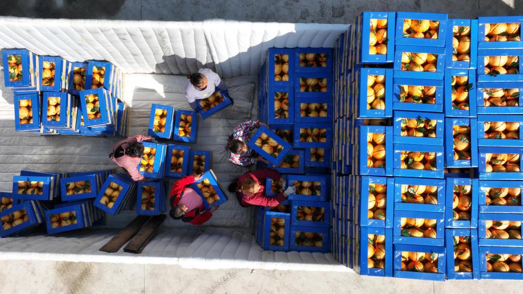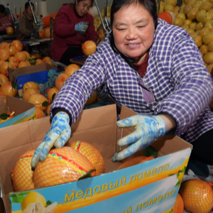 產自貴州岑鞏縣的思州柚準備發往俄羅斯(2023年11月28日攝)。新華社發(唐鵬攝)