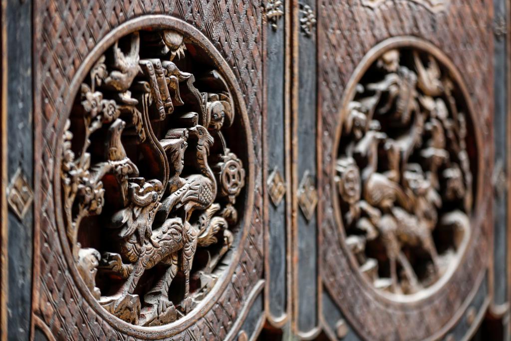 在安徽省黃山市黟縣西遞村房屋內拍攝的木雕裝飾。新華社發(施亞磊攝)