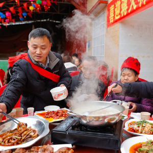 在家人簇擁下,游子終于踏上回家的路。姐夫把迎接親人回家的鞭炮從村口放到了家門口,煙花、禮炮齊鳴,17桌“壩壩宴”坐滿前來道賀的父老鄉親。