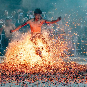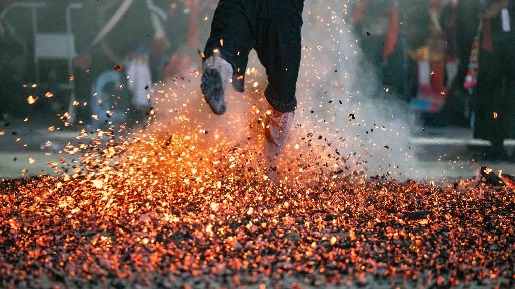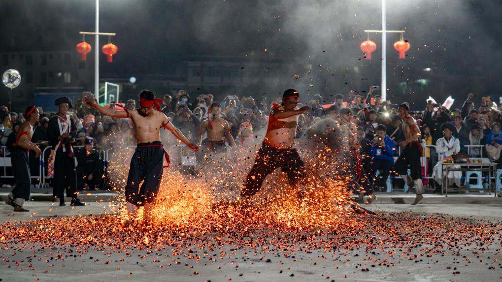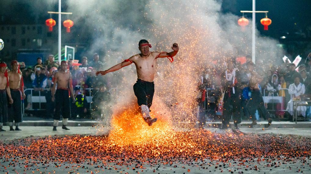 云南省盈江縣蘇典傈僳族鄉日前舉行2024年傈僳族闊時節?;顒又?,傈僳族勇士演示的“下火?!苯^技,是該民族群眾中流傳的一項傳統文化。據了解,大火燃燒后的木炭,中心溫度較高,傈僳族勇士們能從“火?!敝休p松躍過,令人叫絕。