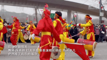 現場鑼鼓喧天,舞獅、踩高蹺、打太平鼓等表演精彩絕倫,熱鬧非凡,儼然成了歡樂的海洋。