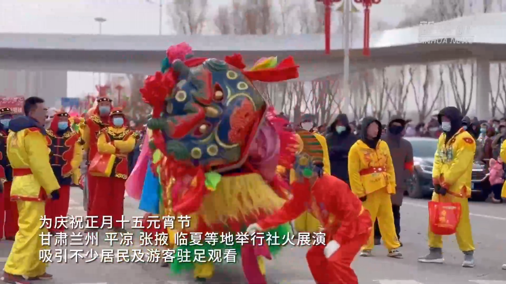 為慶祝正月十五元宵節,甘肅蘭州、平涼、張掖、臨夏等地舉行社火展演,吸引不少居民及游客駐足觀看。