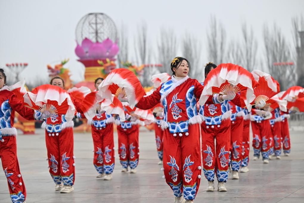 當一天的激烈賽事戰鼓平息,秧歌隊員們身著喜慶艷麗的服裝,伴著歡快的鑼鼓聲,載歌載舞穿行在烏蘭察布市涼城賽區,向參加“十四冬”的運動員、教練員,以及服務保障賽事的工作人員拜年。