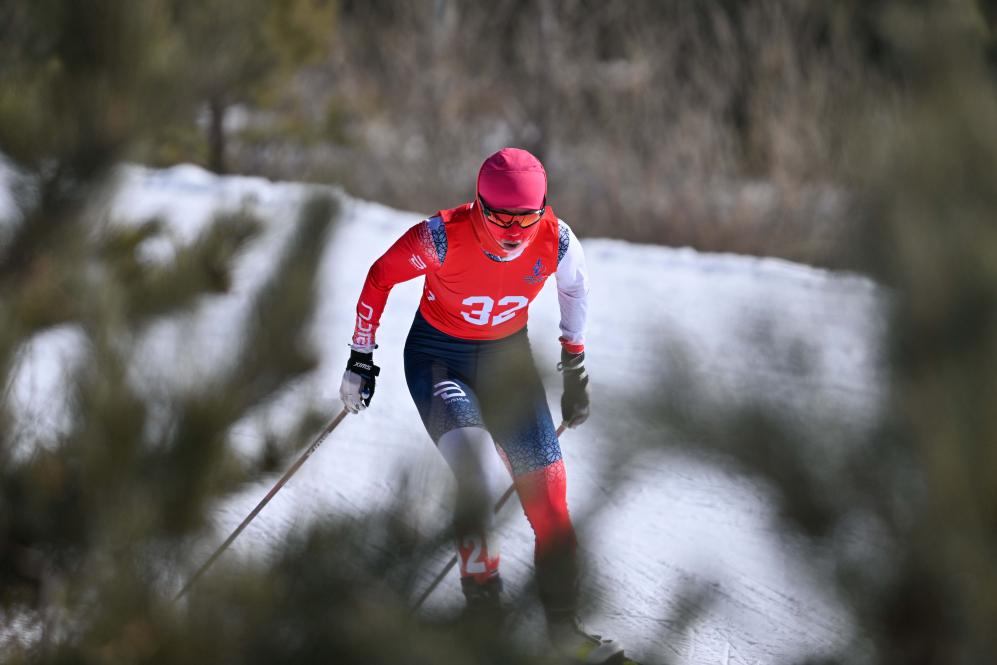 2月16日,黑龍江隊選手李馨在第十四屆全國冬季運動會越野滑雪公開組女子10公里(間隔出發自由技術)比賽中。新華社記者 劉磊 攝