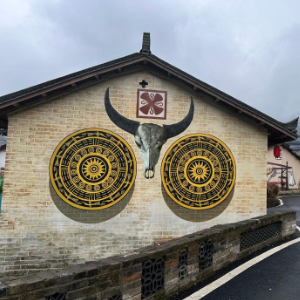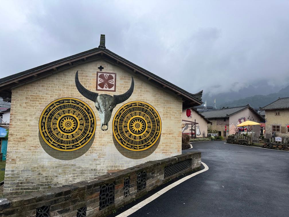 走在石坪村的鄉間小道上,無論是瑤族婚禮墻畫還是壯族銅鼓壁畫,都展現著濃濃的少數民族風情。用舊青磚、瓦片、壇罐、原木建設的一批文創圍欄,讓村莊文化氣息愈加濃厚。
