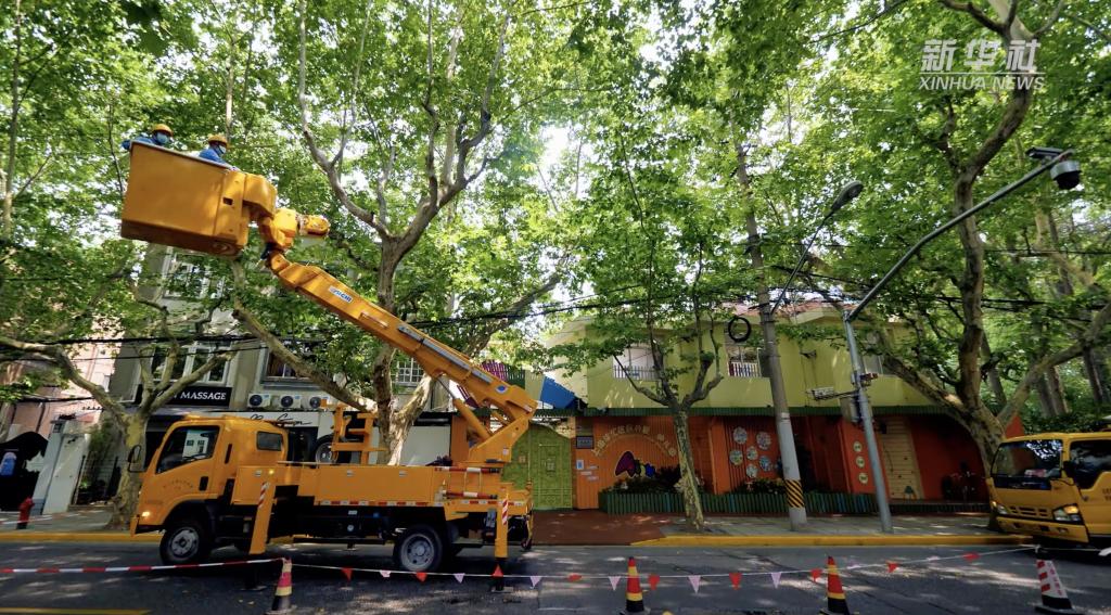 截至目前,上海已建成16個行道樹修剪機械化示范點和5個機械化示范區,成立了19支專業養護隊伍。