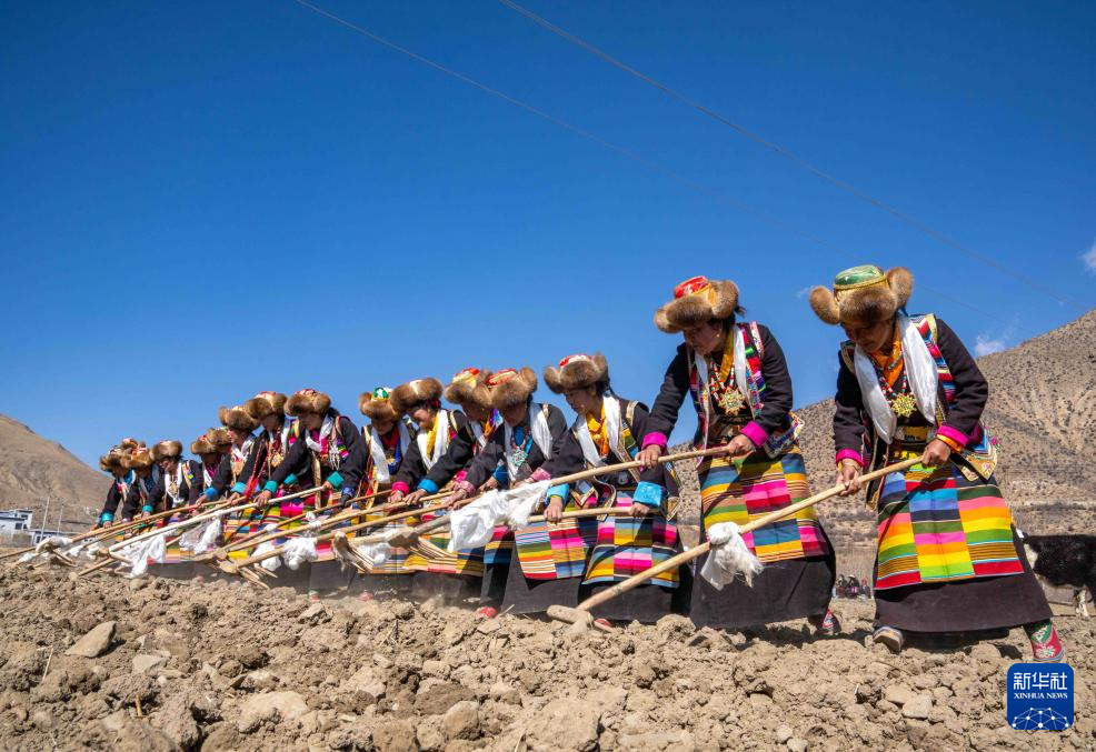 這是3月16日拍攝的西藏山南市瓊結縣加麻鄉加麻村的春耕儀式現場。新華社記者 旦增尼瑪曲珠 攝
