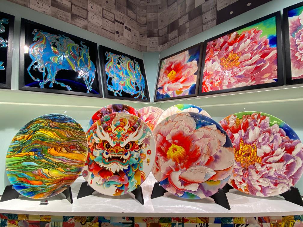 在大街西頭,三彩藝術博物館和牡丹瓷藝術館隔街對望,以三彩元素為主、純手工制作的三彩文創展品“萌態可掬”,傳承唐白瓷燒制技藝的牡丹瓷盤“雍容華貴”。洛陽三彩藝術博物館藝術顧問謝藝堃介紹,這里有各具特色的三彩文創產品,“唐小馬”“唐小駝”等爆款產品根據洛陽博物館館藏文物創作,廣受年輕消費者喜愛。