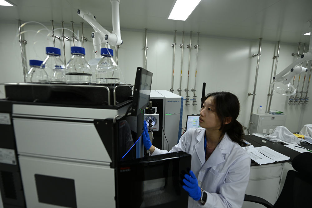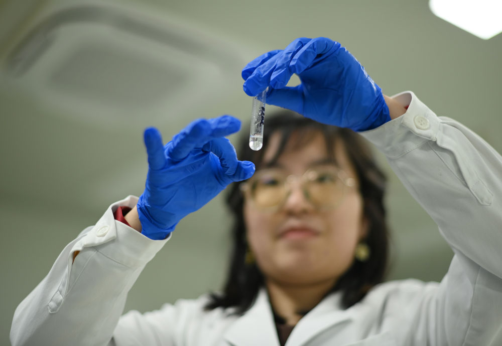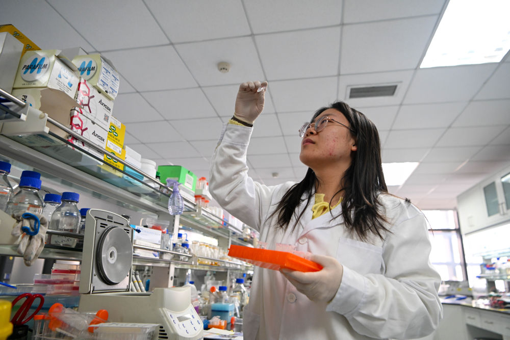 2024年3月22日,工作人員在博雅生命科技有限公司天津基地的實驗室內工作。新華社發