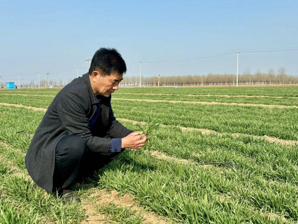 人勤春早,魯西南的田野里生機勃勃。在山東省濟寧市汶上縣南站街道大街村,種糧大戶徐西俊走在田壟邊,不時俯身查看苗情?!扒皟商靹倽擦朔登嗨?,麥子長勢比去年好多了?!?/p>