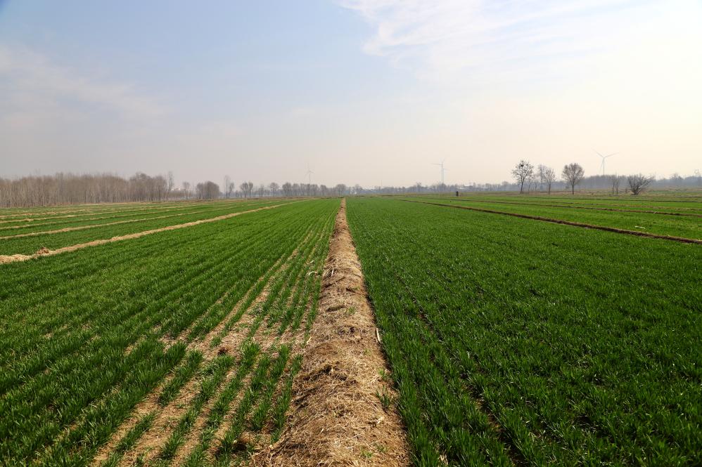 這是濱州市陽信縣流坡塢鎮的一片試驗田,左側使用普通化肥,右側使用沼液水肥一體化灌溉。新華社記者高天 攝