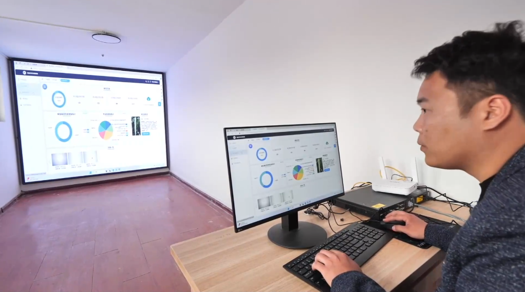 杜曉義通過網絡對種植的1000畝小麥進行生產管理。(視頻截圖)