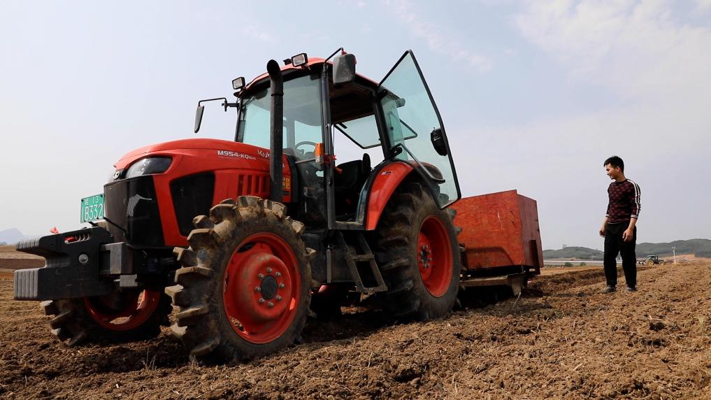 在廣西來賓市興賓區鳳凰鎮的上千畝蔗地里,“90后”“新農人”余才庫奔忙于田間地頭,安裝了北斗導航系統的拖拉機正來回穿梭。