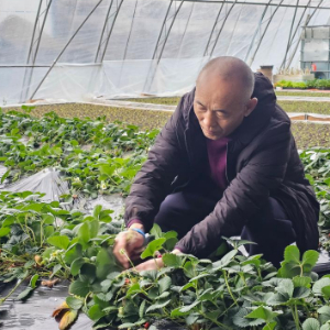 草莓秧苗旁,是他剛剛培育的西瓜、香瓜秧苗?!拔乙还渤邪?棟溫室大棚,草莓種植到4月中旬結束,再接著種上香瓜和西瓜,還能多一筆收入?!崩盍x說,草莓采摘每斤30元到60元不等,靠著承包溫室大棚,日子也越過越甜蜜。