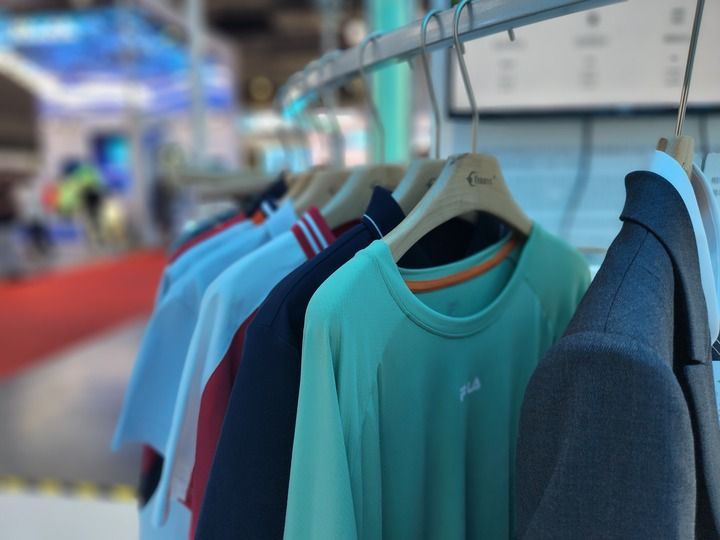 2023年6月13日拍攝的首屆上海國際碳博會上凱賽生物展示的生物基聚酰胺纖維產品制成的服飾。新華社記者 王默玲 攝