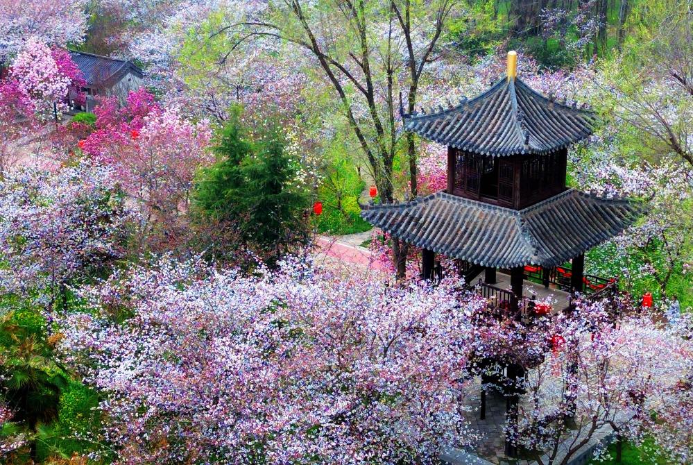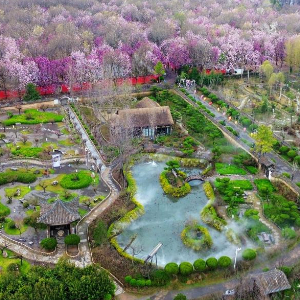 這是3月27日拍攝的位于河南省鄢陵縣的一處園林(無人機照片)。