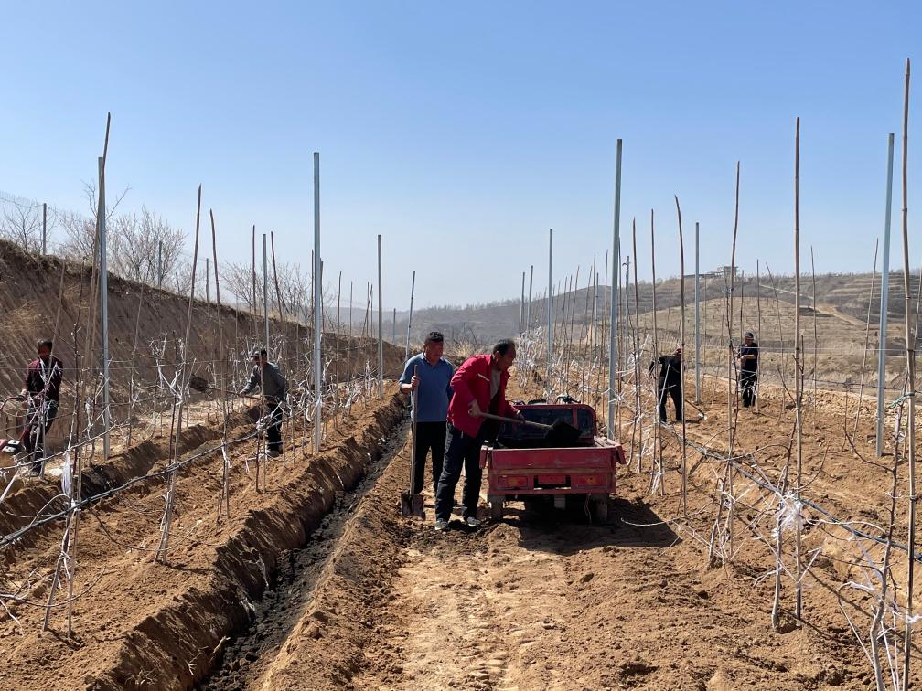 在延安市寶塔區橋溝街道煙洞溝村,趁著和煦的春風,延安市寶塔區昌民種養殖農民專業合作社理事長馬文昌正和十幾個村民一起,為蘋果樹覆膜澆水。馬文昌說,延安蘋果知名度逐年提升,全村人對種出更優質的蘋果,寄予了更大希望?!艾F在,我們合作社新建的125畝山地果園全部采用了旱作矮砧密植種植技術,實現了水上山、肥入園。進入豐產期后,每畝出產8000斤以上的優質蘋果將不成問題?!?/p>